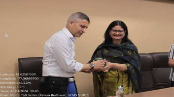 With a successful track record of organizing more than 40 Global Talk Series events, the International Cell has demonstrated its commitment to fostering the holistic development of students at SCMS NOIDA. These sessions provide students with practical insights and inspire innovation and creativity, preparing them for leadership roles in the globalised landscape of Industry 4.0. Through continuous engagement with international thought leaders, the Global Talk Series reinforces SCMS NOIDA's dedication to providing students with transformative learning experiences that transcend geographical boundaries.