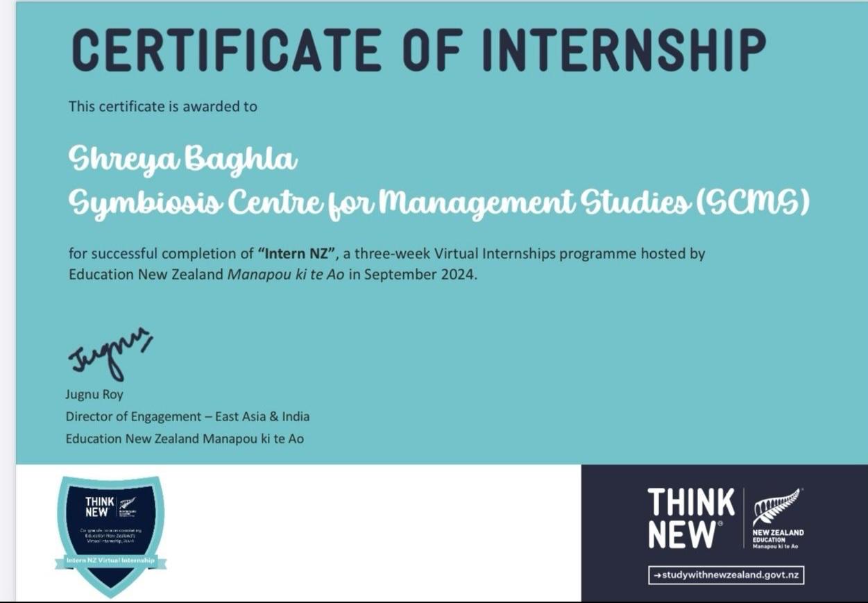 She was selected from over 1,500 applicants for a virtual internship with Education New Zealand, held from 26th August to 8th October. During the program, she created and executed a social media marketing plan for a New Zealand-based sustainable knitwear company. The experience enhanced her skills in strategic marketing, brand building, and content planning, especially for eco-friendly brands with limited digital presence. “This internship was a transformative experience. Developing a full social media strategy for a sustainable brand taught me the power of focused, value-driven marketing and gave me real-world insights into building digital presence from scratch.”