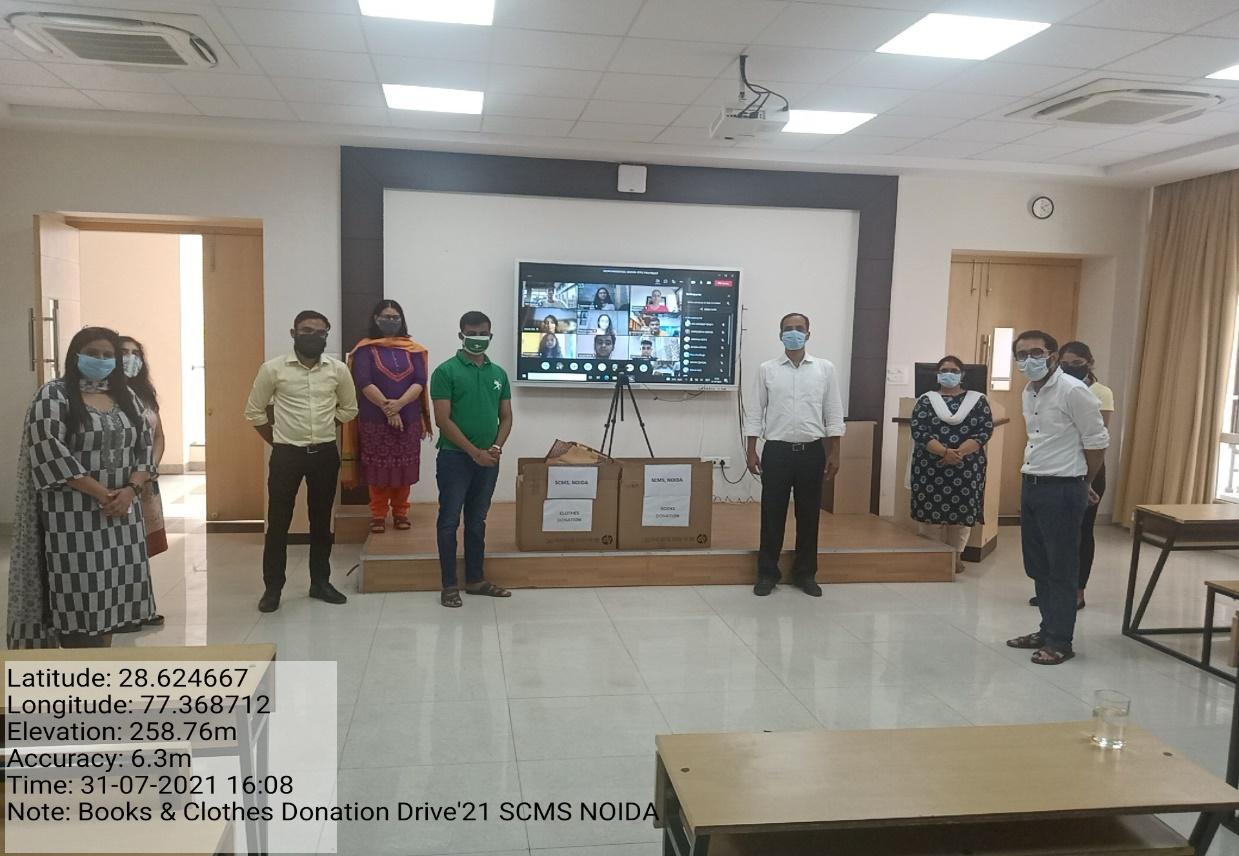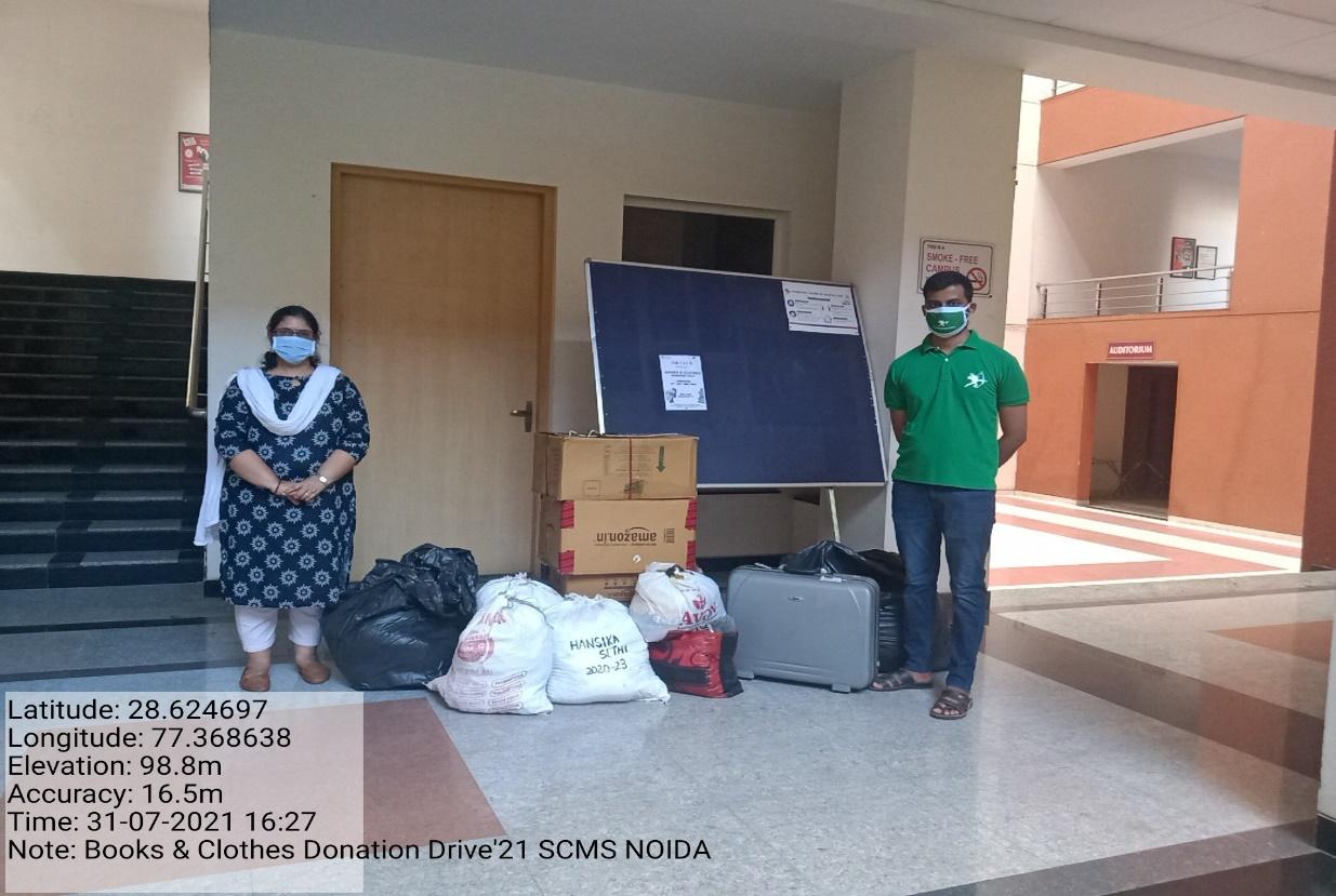 On the occasion of the birth anniversary of Prof. S.B. Mujumdar, Founder and President of Symbiosis International (Deemed) University, and International Students Day, The Institute Social Responsibility (I.S.R) Club, SCMS NOIDA, took the initiative to organize a “Books and Clothes Donation Drive” to cater to the needs of those in position of necessity.