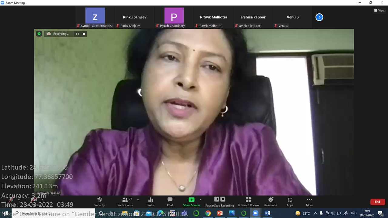 Quality Improvement Cell (QIC) of Symbiosis Centre for Management Studies, Noida, organized a guest lecture on “Gender Sensitization”. The works shop was held on Gender Sensitization on 28 March 2022 with objective of creating awareness about gender issues and working towards and creating an enabling environment of gender justice where men and women can work together with a sense of personal security and dignity.