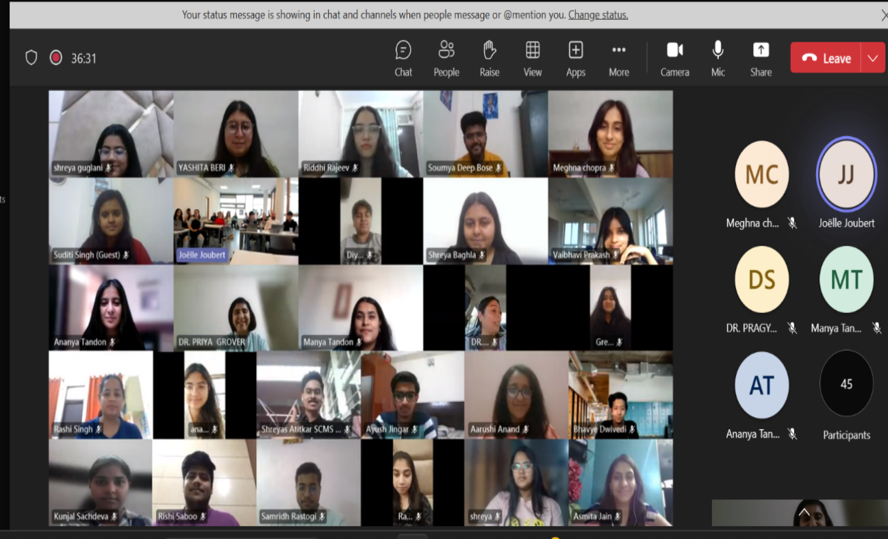 Prof.Stephanie Doscher, Professor Pajares, Professor Lovo from FIU, Dr Pragya Singh from SCMS Noida and Dr Geeta Singh from SCMS Hyderabad collectively enriched the learning experience with their expertise.