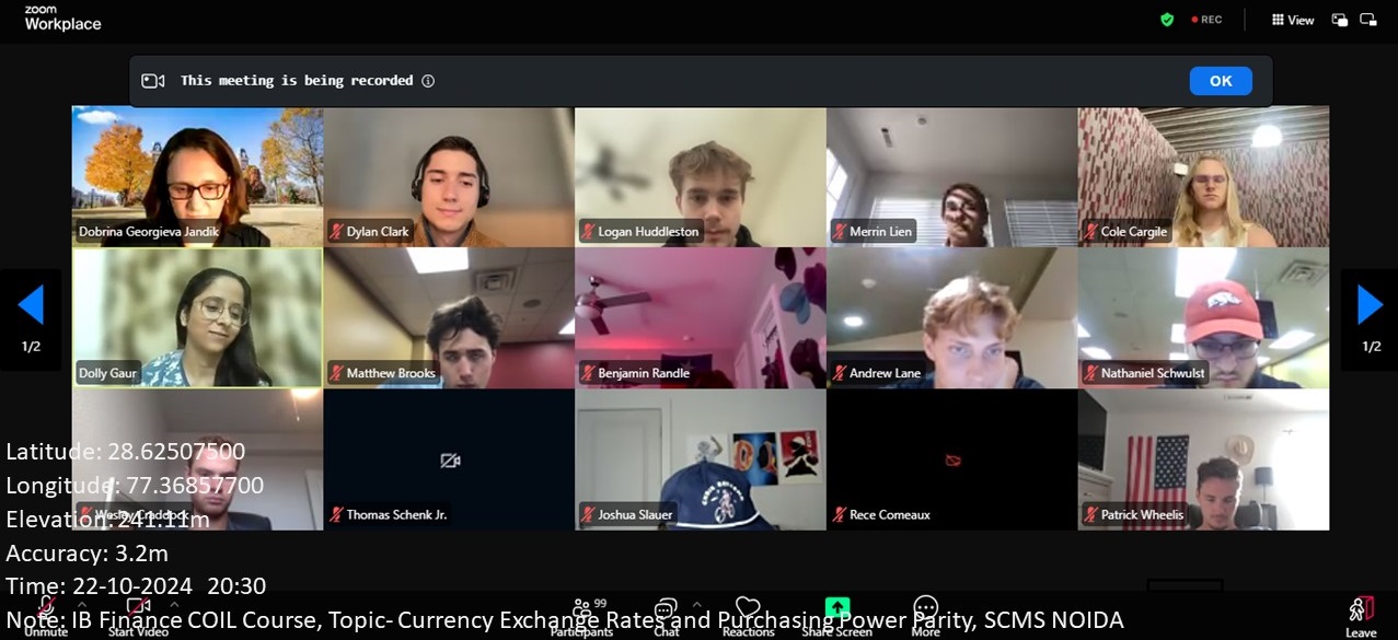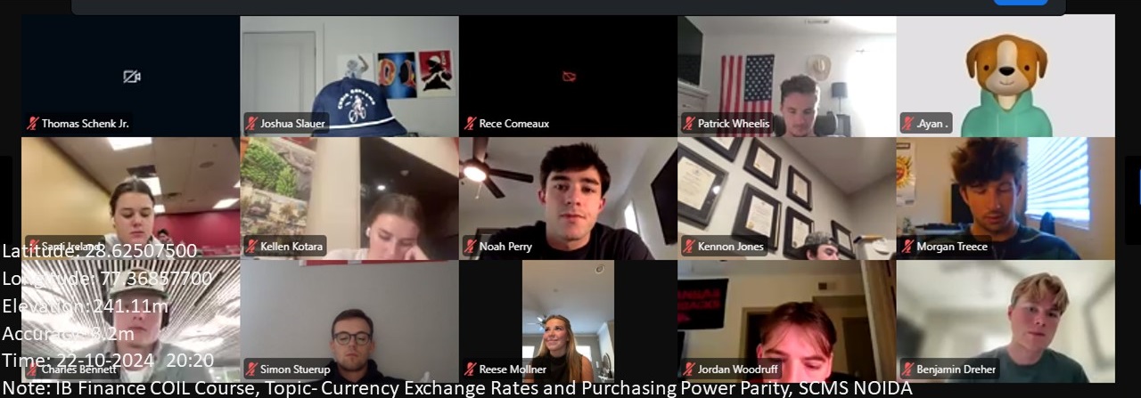 A collaborative online international learning course on "Currency Exchange Rates and Purchasing Power Parity,” was conducted from September to October, 2024. This was a collaborative activity between the University of Arkansas, SCMS Hyderabad and SCMS Noida. The course brought real-time basics in global financial ideas, exchange rates, and cross-cultural cooperation to the students.