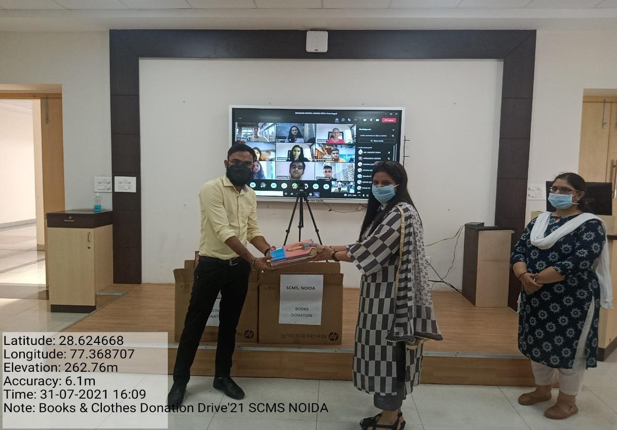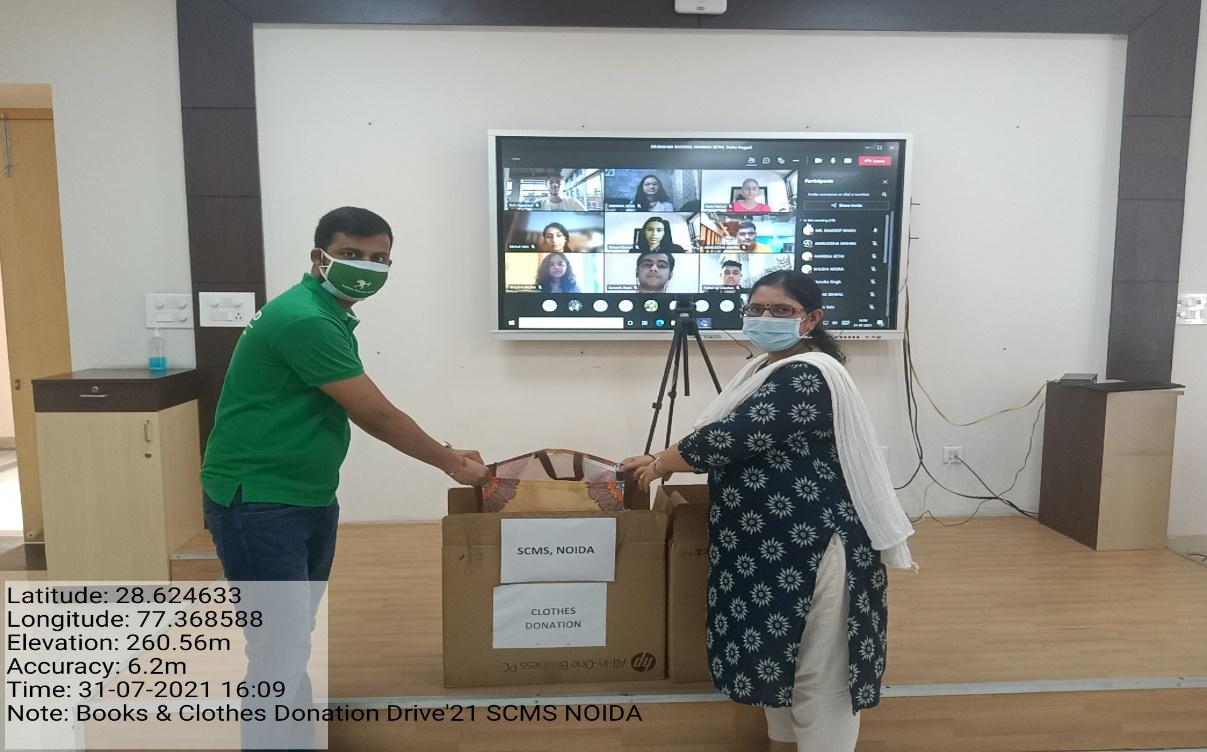 On the occasion of the birth anniversary of Prof. S.B. Mujumdar, Founder and President of Symbiosis International (Deemed) University, and International Students Day, The Institute Social Responsibility (I.S.R) Club, SCMS NOIDA, took the initiative to organize a “Books and Clothes Donation Drive” to cater to the needs of those in position of necessity.