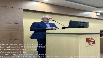 The International Cell at Symbiosis Centre of Management Studies, Noida hosted a seminar on March 6, 2024, as part of its Global Talk Series, focusing on "Issues for Management and Organizations in Challenging Times." Renowned speaker Professor Bob Townley, Director of Postgraduate Programs at the School for Business and Society, University of York, UK, led the session. Professor Townley, a member of the Work, Management, and Organizations (WMO) group, brought extensive experience and expertise to the discussion, addressing various global crises such as conflicts, the COVID-19 pandemic, Brexit, and India's water crisis.