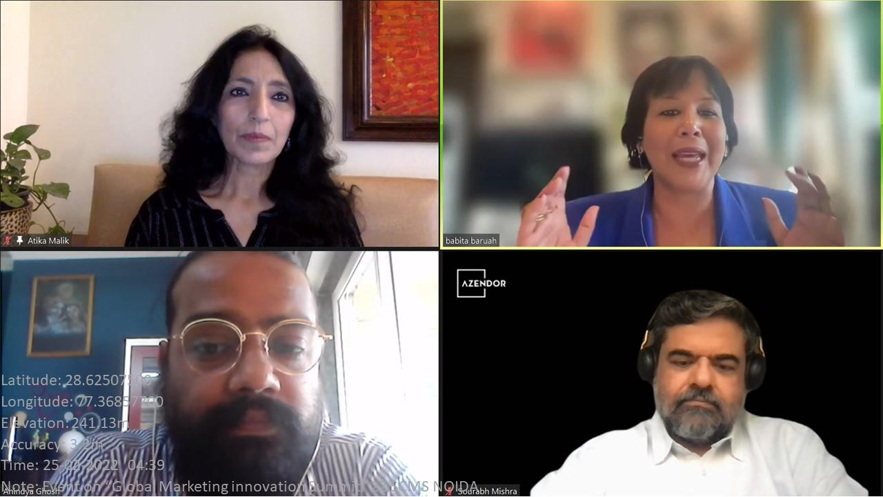 For a comprehensive knowledge of the theme, a panel discussion was held on the topic- “The Changing Role Of Marketing In Global Startups In The New Reality.” The dignitaries of the panel were Ms. Babita Baruah, who is the Regional Client Lead, WPP; Ms. Atika Malik - Strategic Advisory Partner, Former Chief Operating Officer, and Chief Strategy Officer, Cheil India, South West Asia; Mr. Saurabh Mishra (Co-Founder and Managing Partner), Azendor Brand Consulting; Mr. Anindya Ghosh (Founding Partner) - Sam & Andy.
