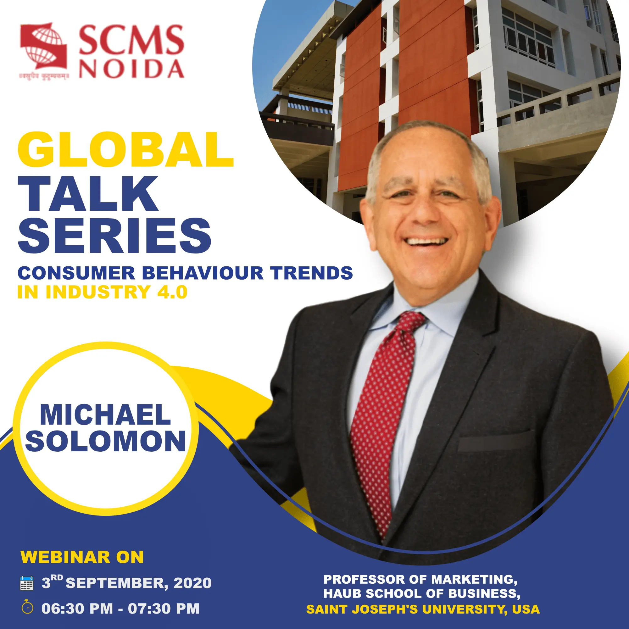Mr. Michael R. Solomon, PhD. Professor of Marketing with research areas in consumer behaviour and lifestyle issues, and much more was invited as chief guest for the webinar on the topic ‘Consumer Behavior Trends in Industry 4.0’ held by the International cell of SCMS NOIDA. Mr. Michael told us about his discussions with professional experts in the fields of human research, operations research, and the skills required for the upcoming future. As the pandemic is accelerating, all experts and students have acquired skills like the Work from Home Concept to overcome it and how we can focus on the brighter side of the pandemic.