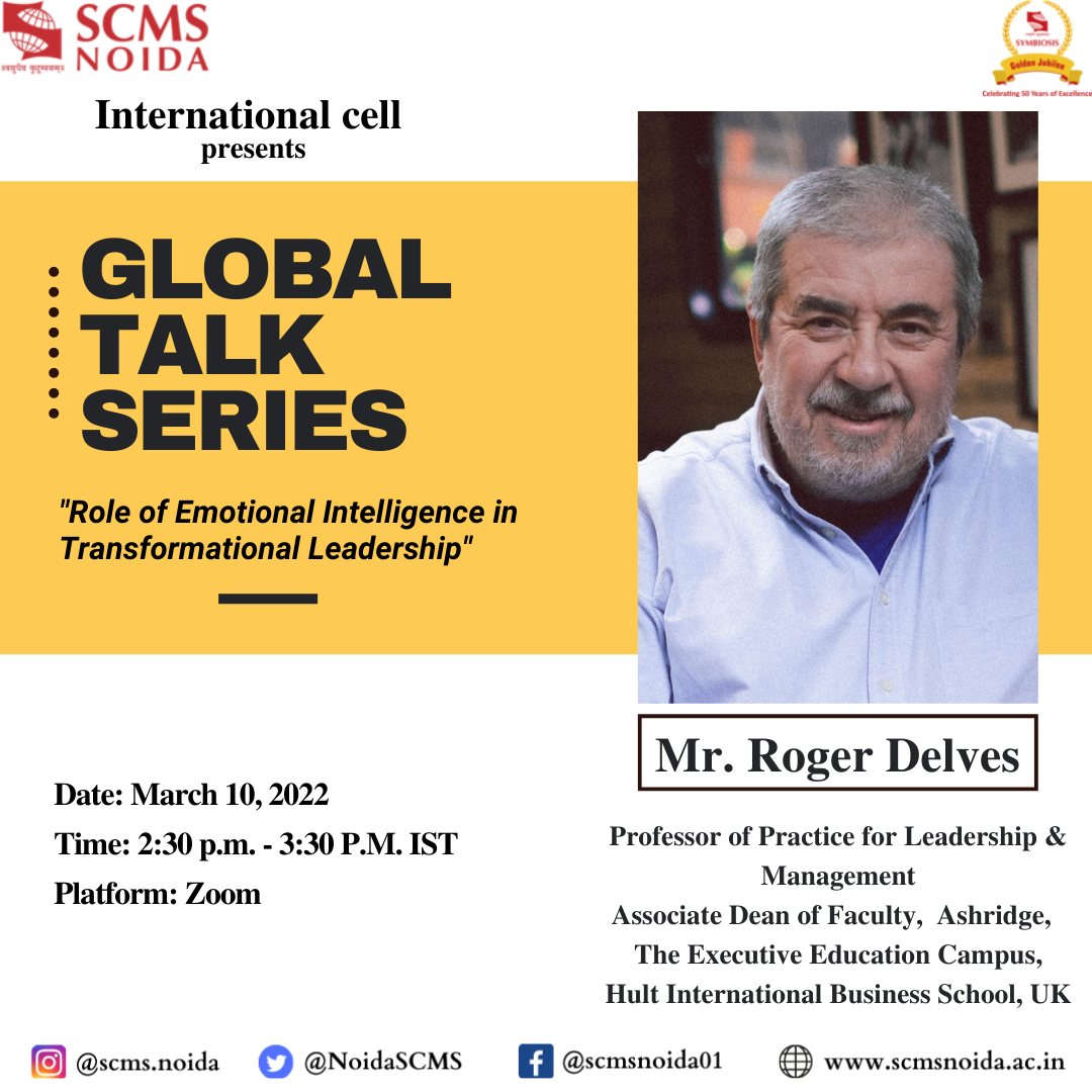 SCMS NOIDA’s International cell invited Mr. Gordon Tredgold to give his insights and talk about the topic “Emerging Leadership Styles in Industry 4.0” on 21st December 2020, for first- year students.