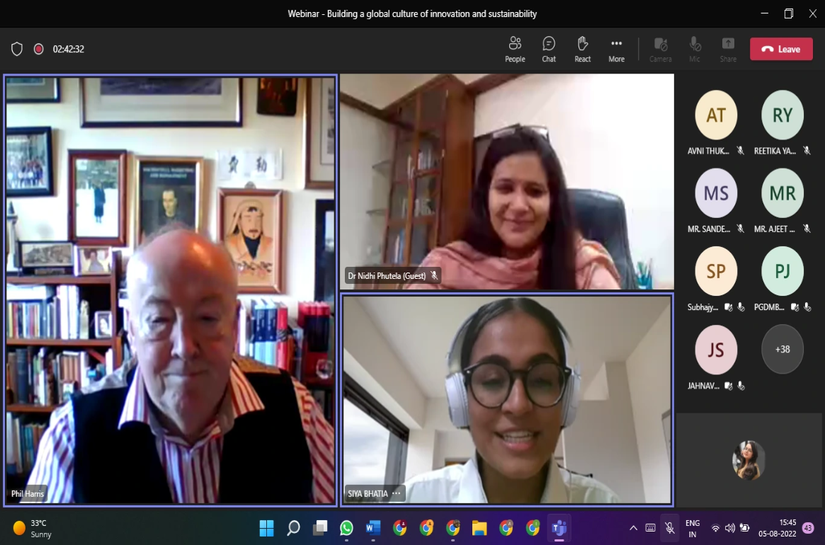 Professor Harris spoke about "Building a Global Culture of Innovation and Sustainability." He emphasized the importance of innovation, cultural adaptation, and open communication for success in a globalized world. Students from various universities participated and asked insightful questions.